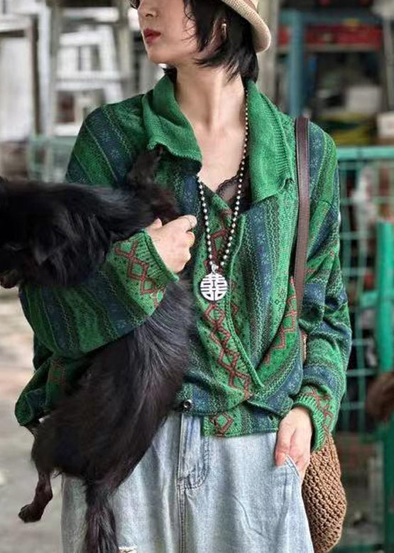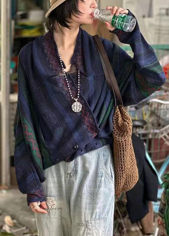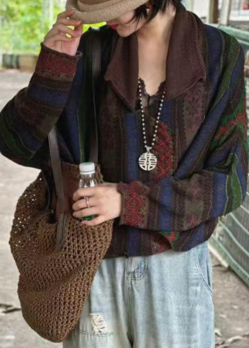 French Yellow Peter Pan Collar Button Print Cotton Knit Coat Spring