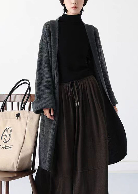 Handmade Cozy Khaki V Neck Woolen Cardigans Spring