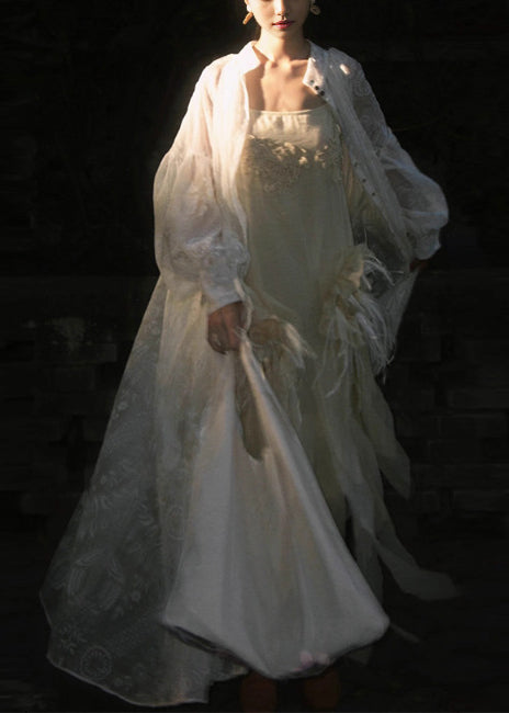 Handmade White Oversized Jacquard Cotton Cardigan Summer