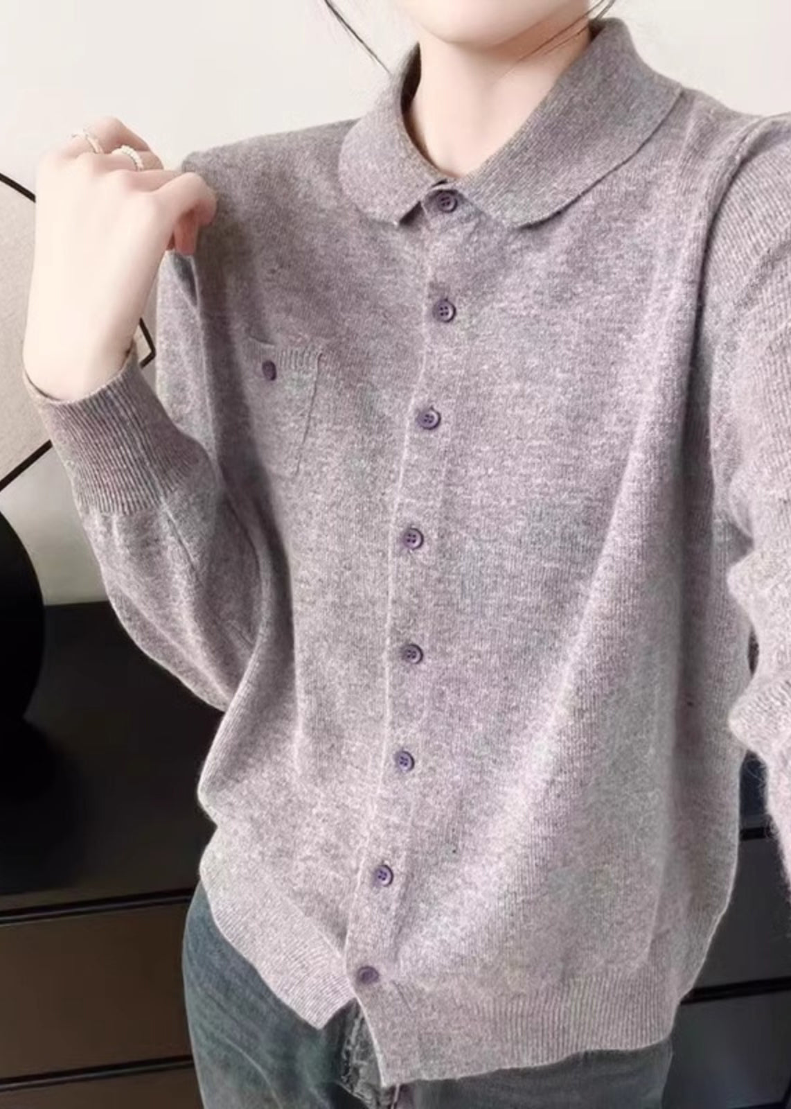 Handmade White Peter Pan Collar Pockets Solid Cotton Knitted Cardigans Fall