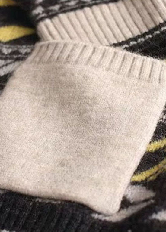 Italian Apricot V Neck Print Pockets Knit Cardigans Winter
