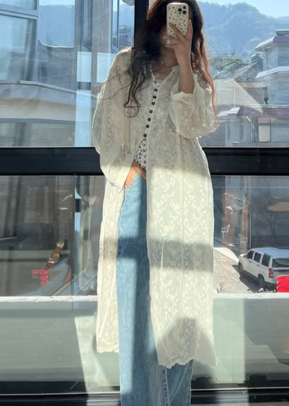 Italian Beige Hollow Out Embroideried Patchwork Lace Cardigan Fall