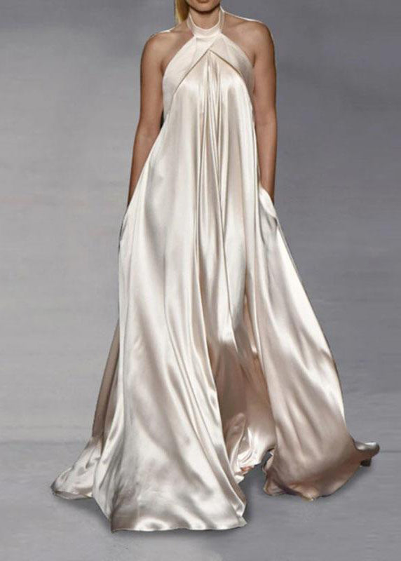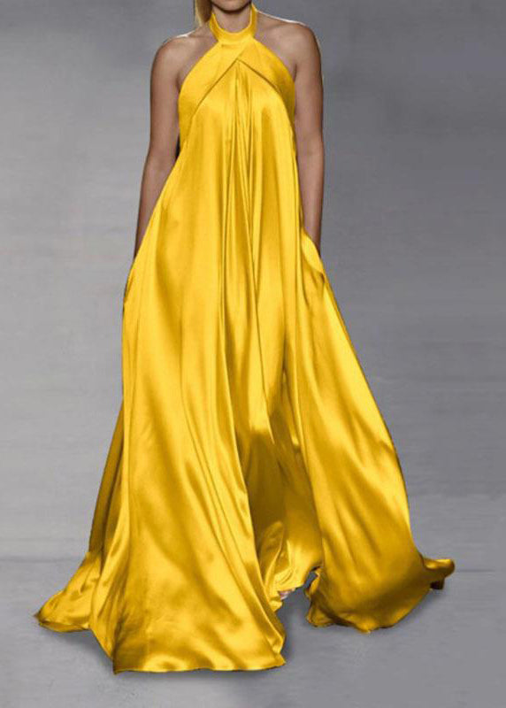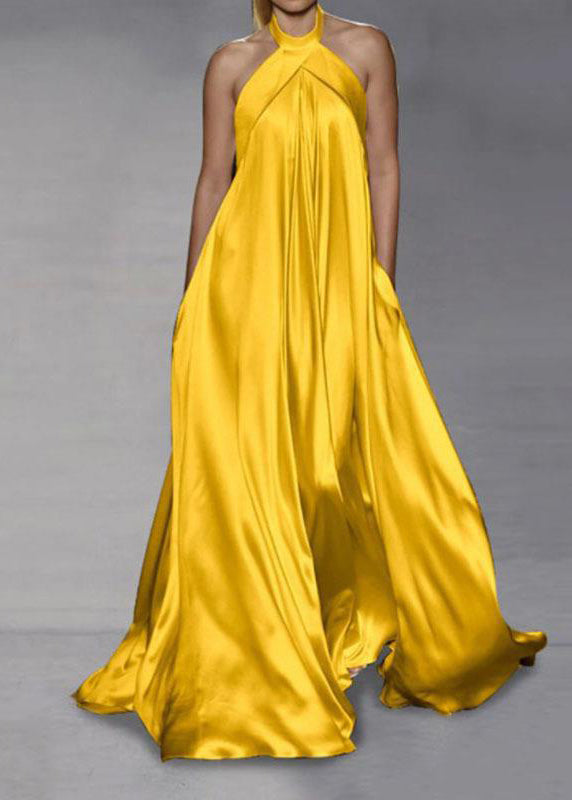 Italian Black Halter Patchwork Solid Silk Long Dress Summer