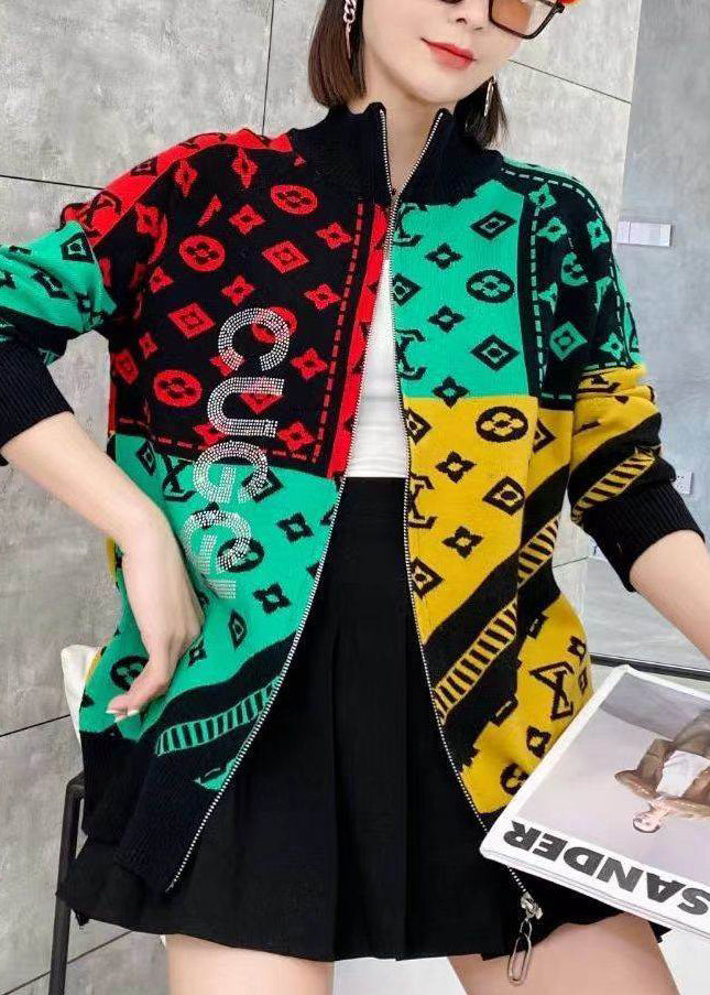 Italian Blue Zip Up Print Knit Cardigan Spring