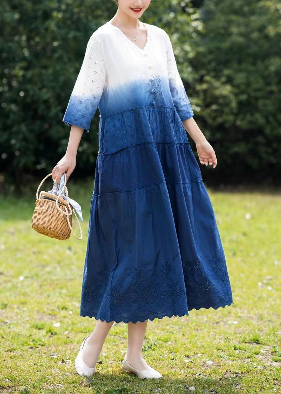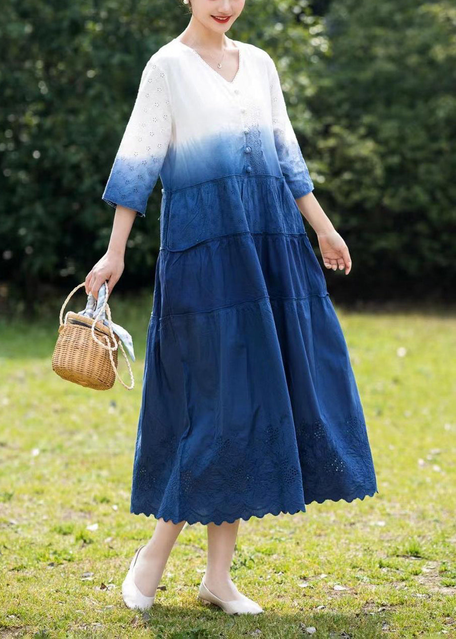 Italian Gradient Color Tie Dye Embroideried Cotton Dresses Bracelet Sleeve