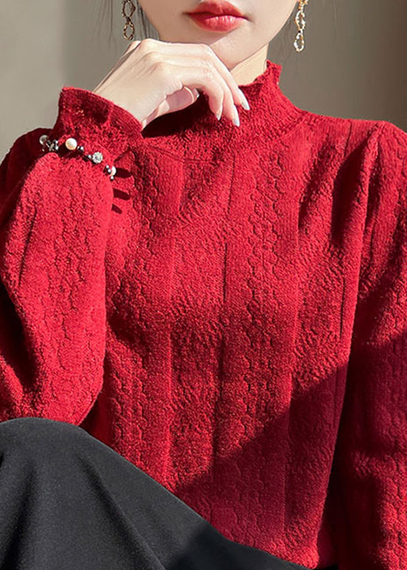 Jacquard Beige Turtleneck Cozy Solid Cotton Knitted Tops Winter
