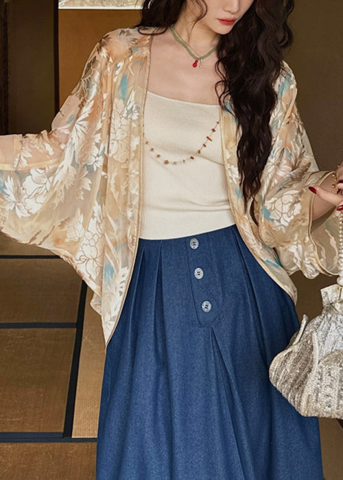 Khaki Original Design Silk Loose Coat V Neck Fall