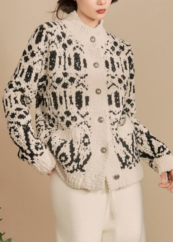 Loose Black Print Button Cotton Knit Cardigan Winter