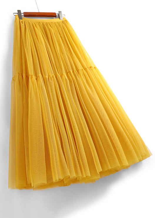 Loose Green Wrinkled Elastic Waist Tulle Skirts Summer