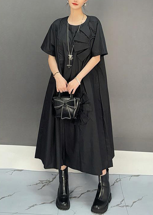 Loose Khaki O Neck Solid Patchwork Cotton Dress Summer