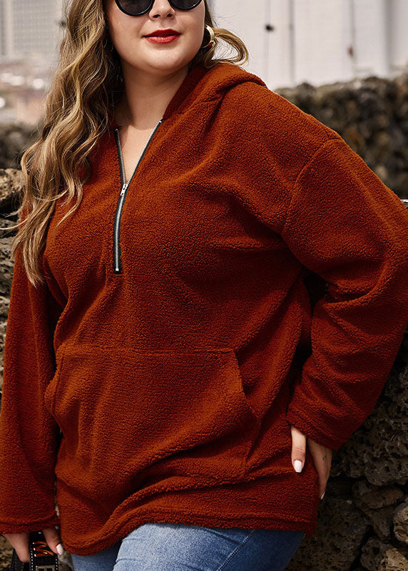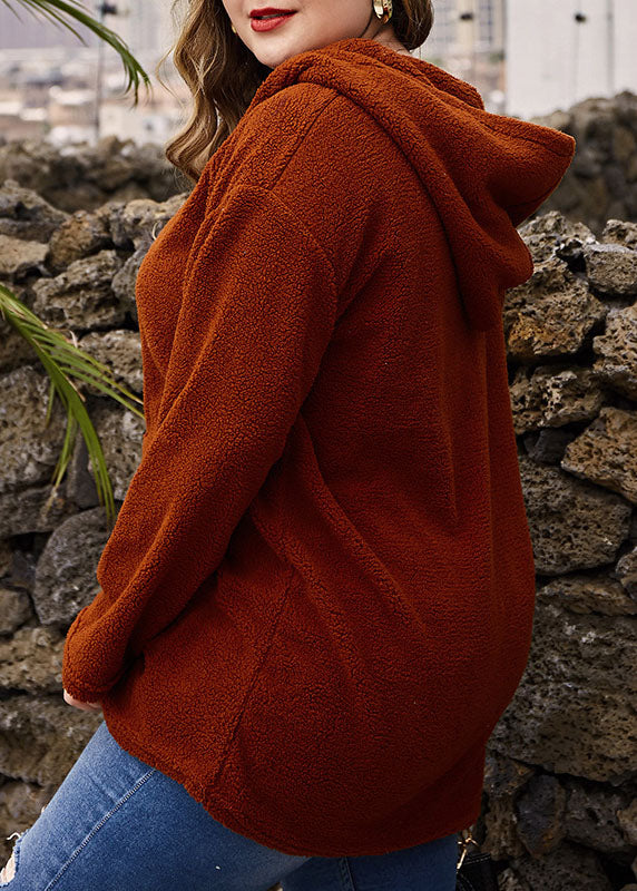 Loose Mulberry Patchwork Zip Up Faux Fur Hooded Coats Fall