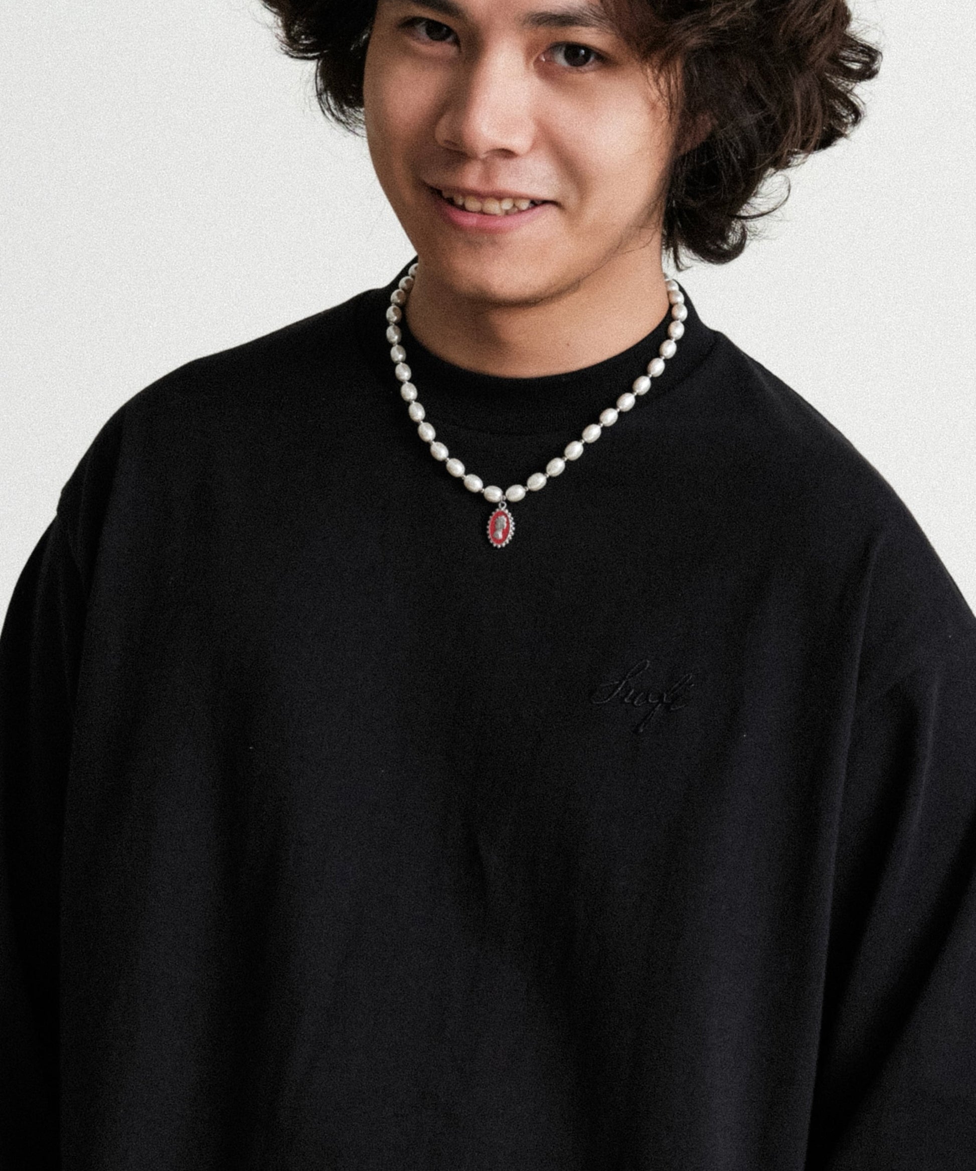 Men White Stainless Steel Pearl Enamel Drip Glaze Pendant Necklace