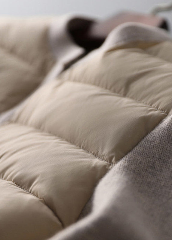 Modern Beige White Colour O-Neck Patchwork Knit Parka Long Sleeve