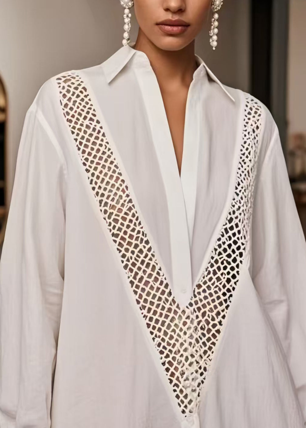 Modern White Oversized Hollow Out Cotton Dresses Spring