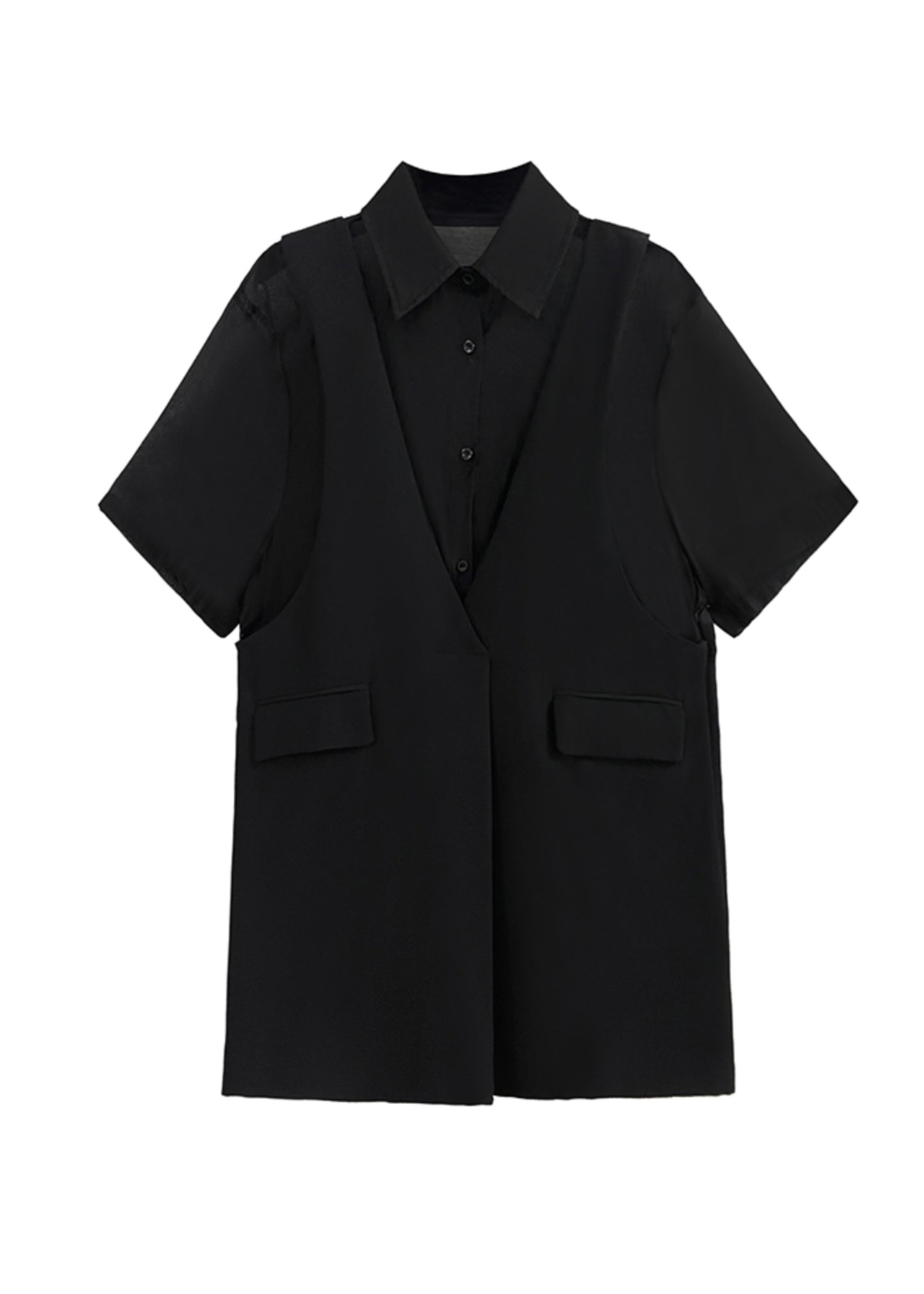 New Black Peter Pan Collar False Two Pieces Patchwork Dresses Summer