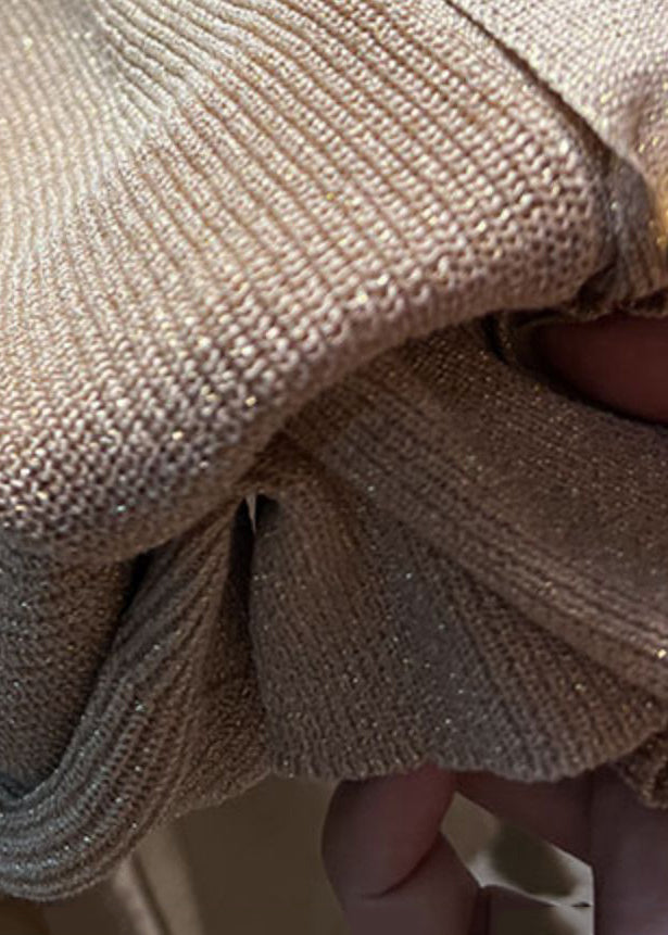New Khaki V Neck Button Patchwork Knit Top Fall