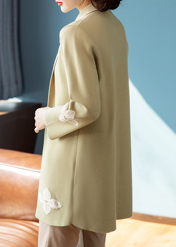 New Matcha Green V Neck Embroideried Patchwork Knit Cardigans Fall