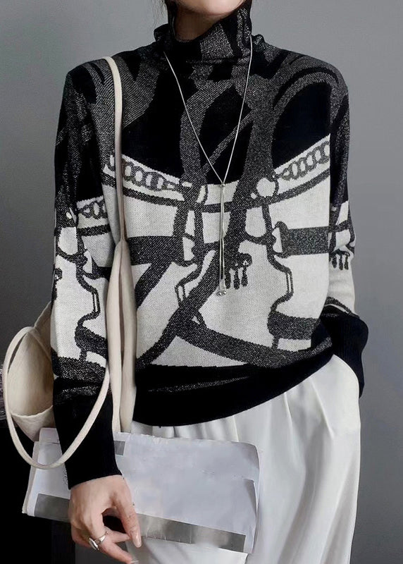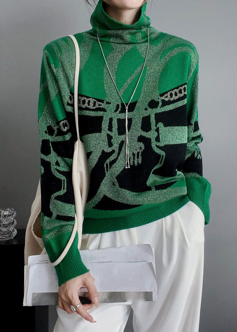 New Orange Turtleneck Print Patchwork Knit Top Fall