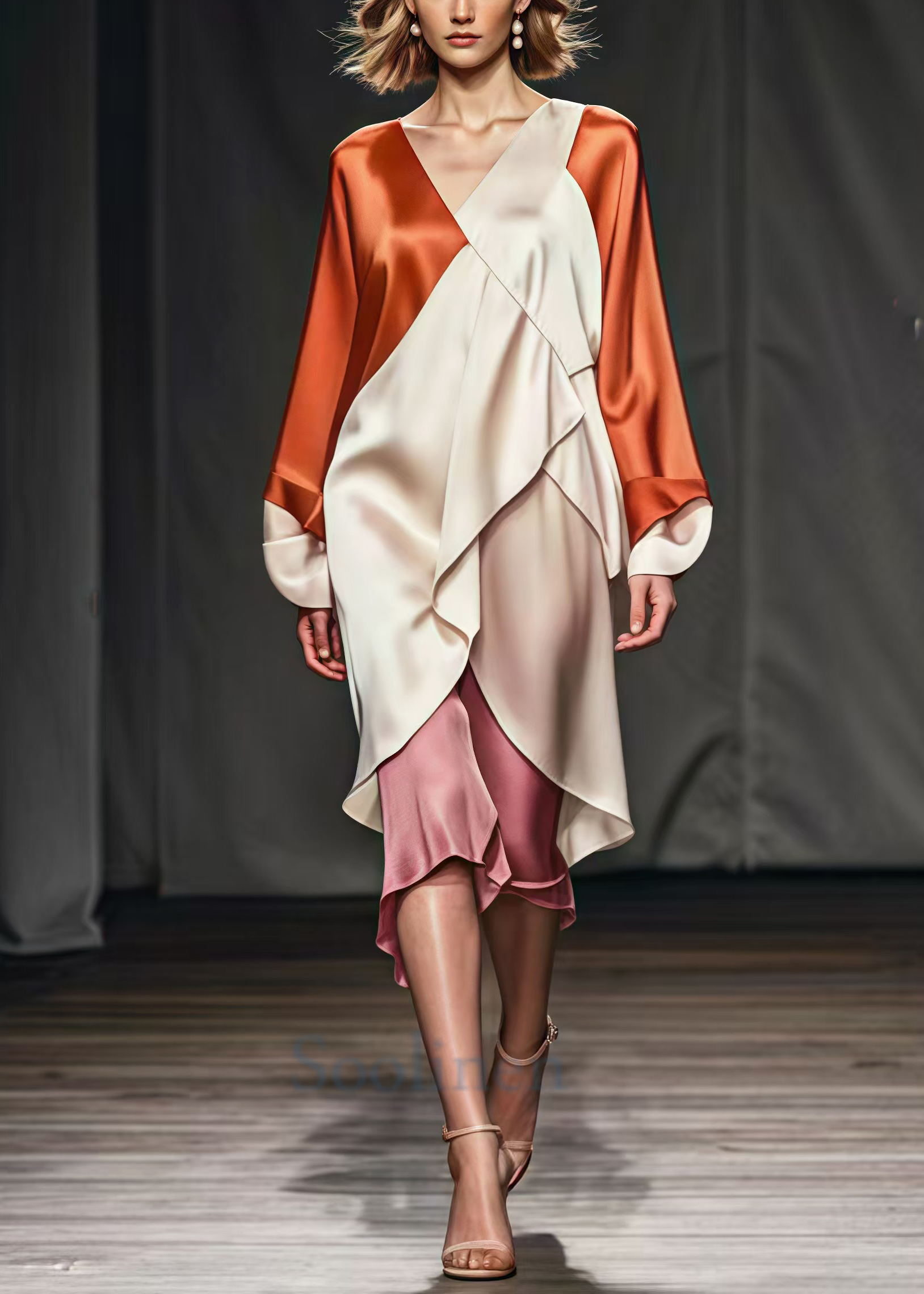 Organic Colorblock Asymmetrical Patchwork Silk Holiday Dress Spring
