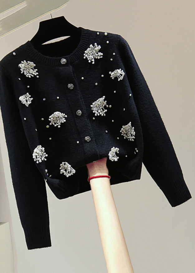 Original Design Apricot Floral Nail Bead Thick Cotton Knit Sweaters Winter