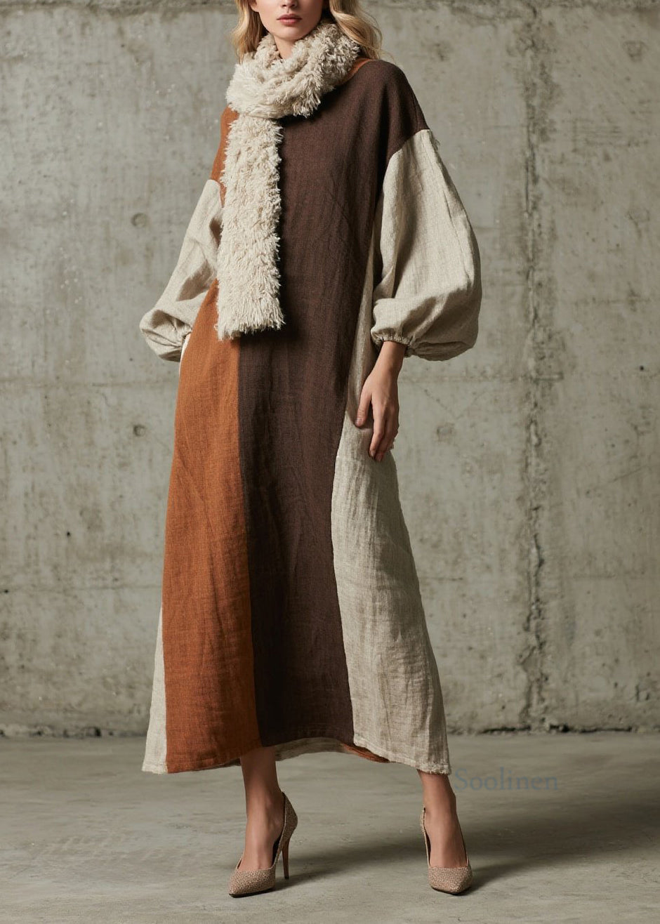 Original Design Colorblock Patchwork Cotton Long Dress Fall