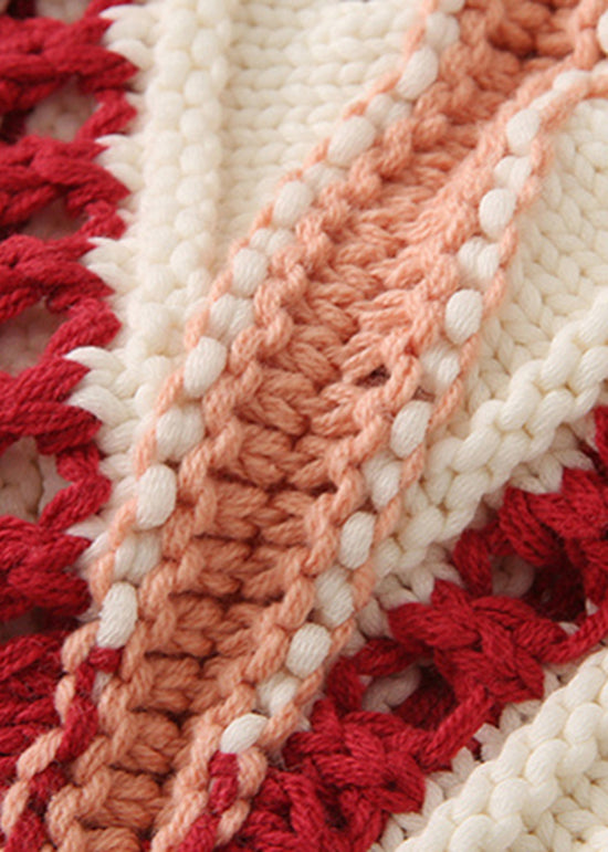 Original Design O-Neck Striped Hollow Out Knit Sweaters Spring