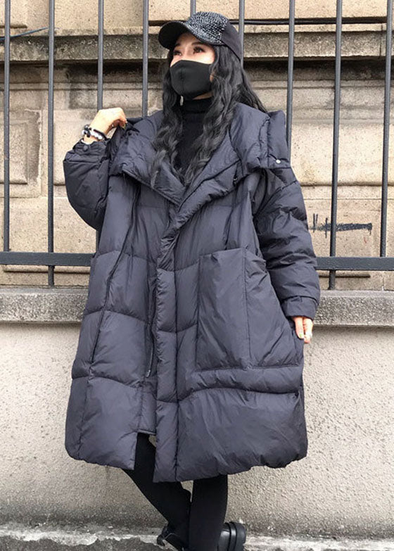Plus Size Black Hooded Oversized Thick Duck Down Jackets Winter