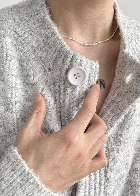Plus Size Grey Stand Collar Oversized Cozy Wool Man's Cardigans Winter