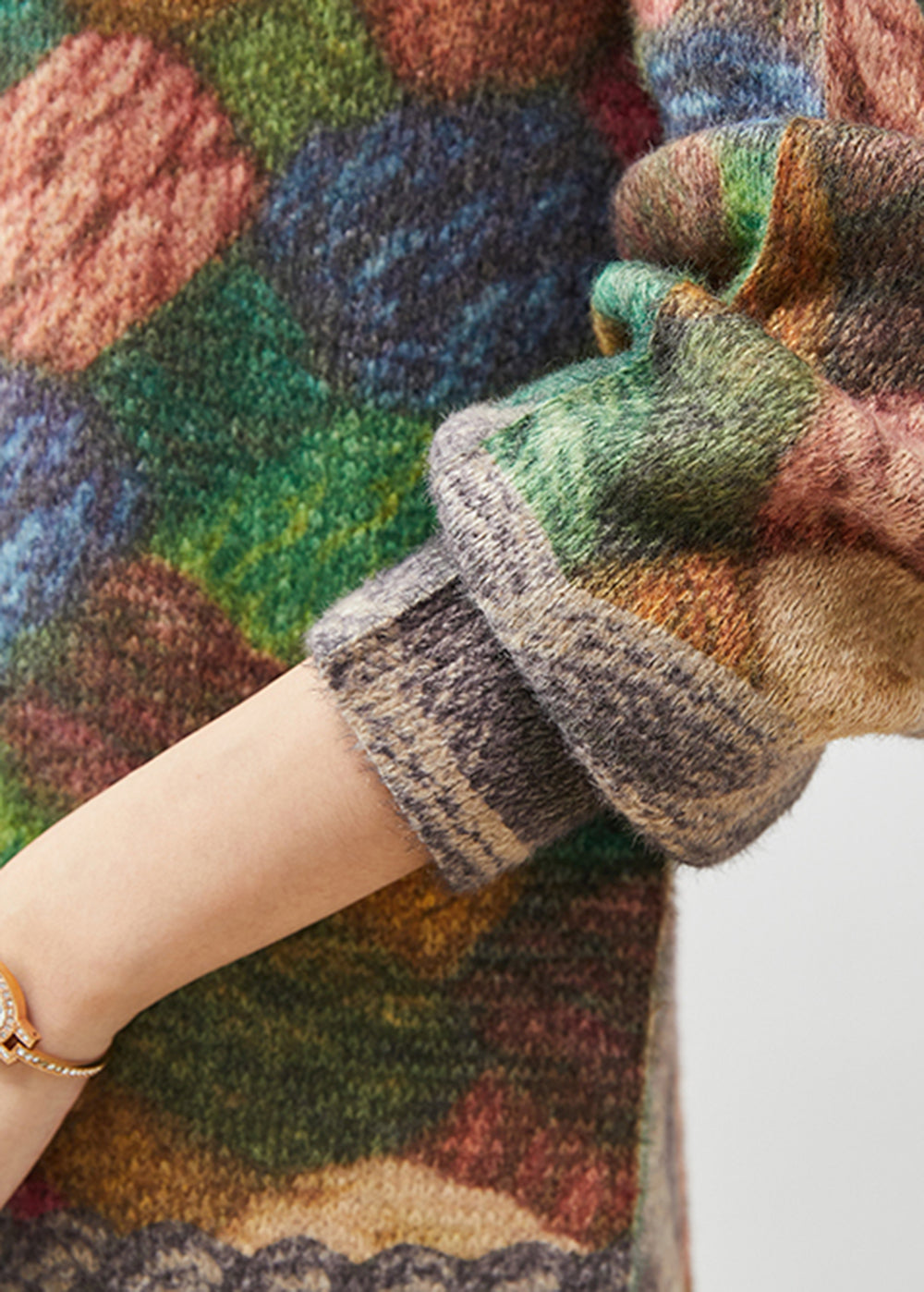 Plus Size Khaki Oversized Thick Print Knit Pullover Spring
