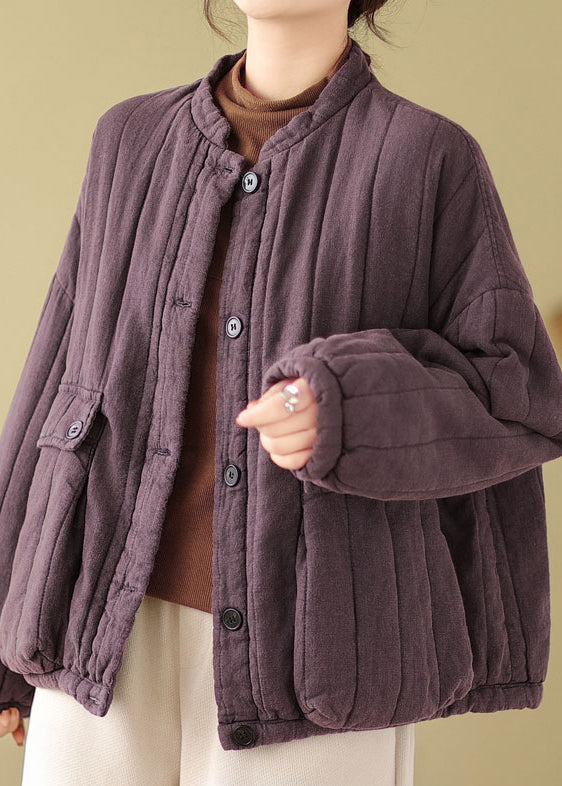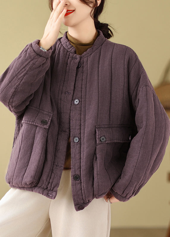 Purple Pockets Fine Cotton Filled Jackets Stand Collar Winter