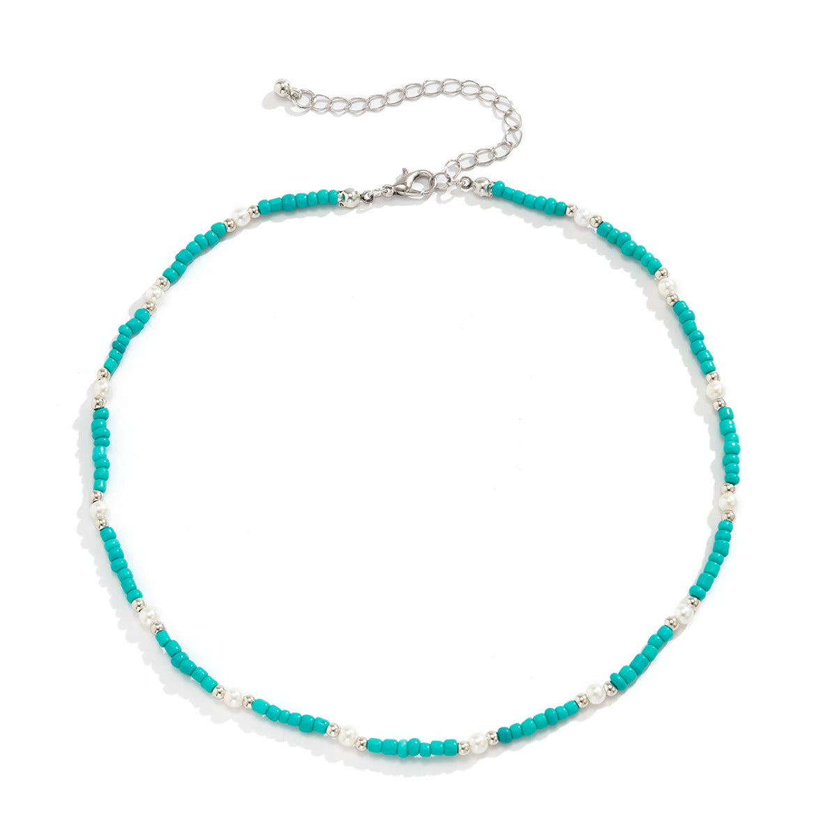 Simple Blue Fresh Style Bead Woven Necklace Versatile