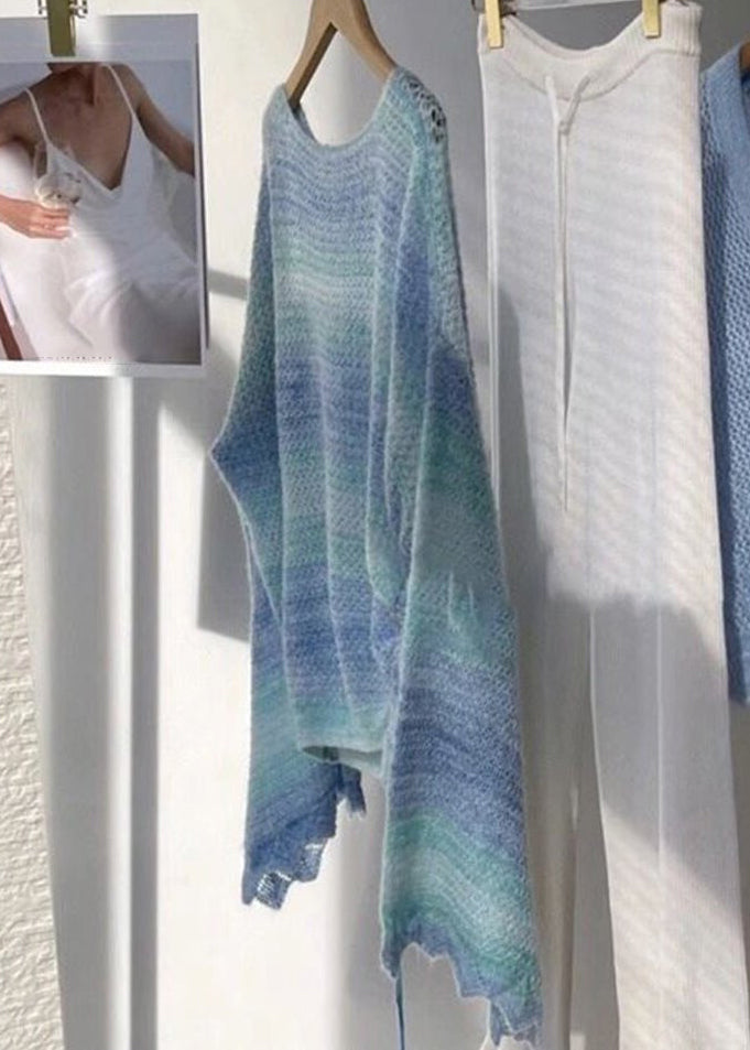 Simple Gradient Color O Neck Drawstring Patchwork Knit Top Fall