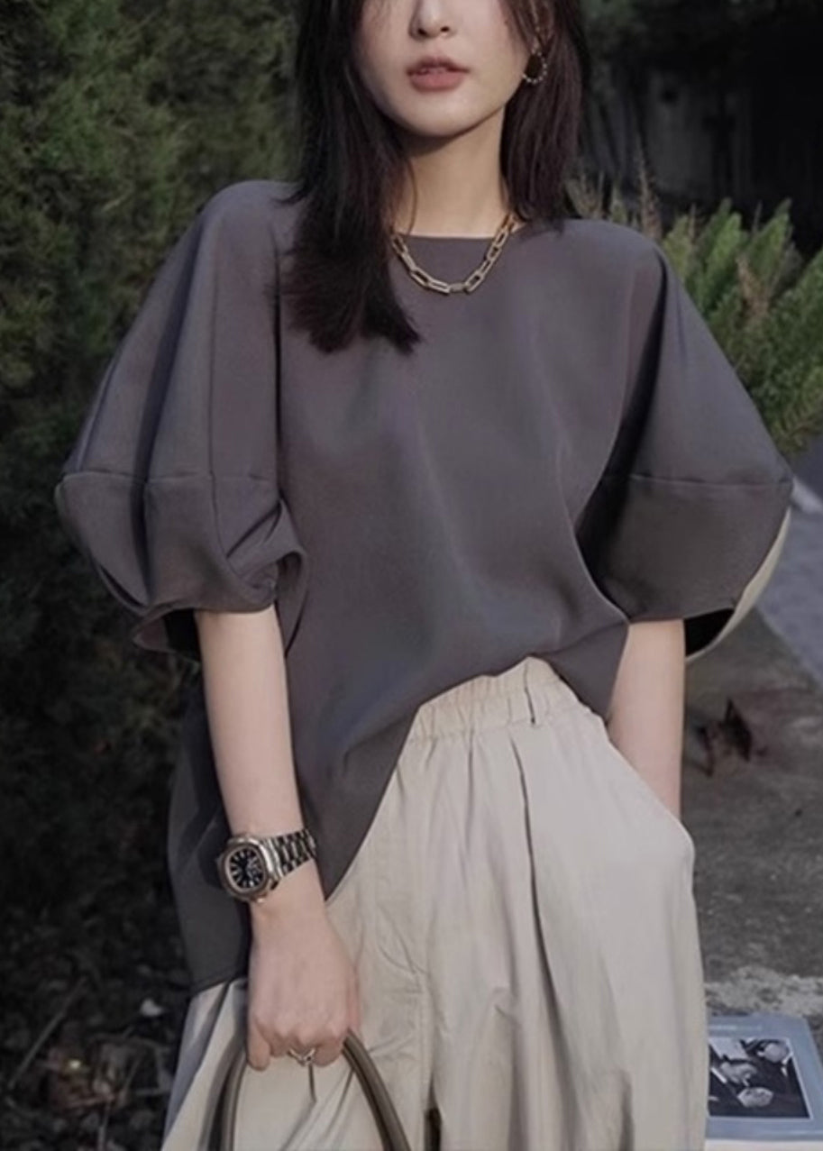 Simple Grey O-Neck Solid Cotton T Shirt Half Sleeve