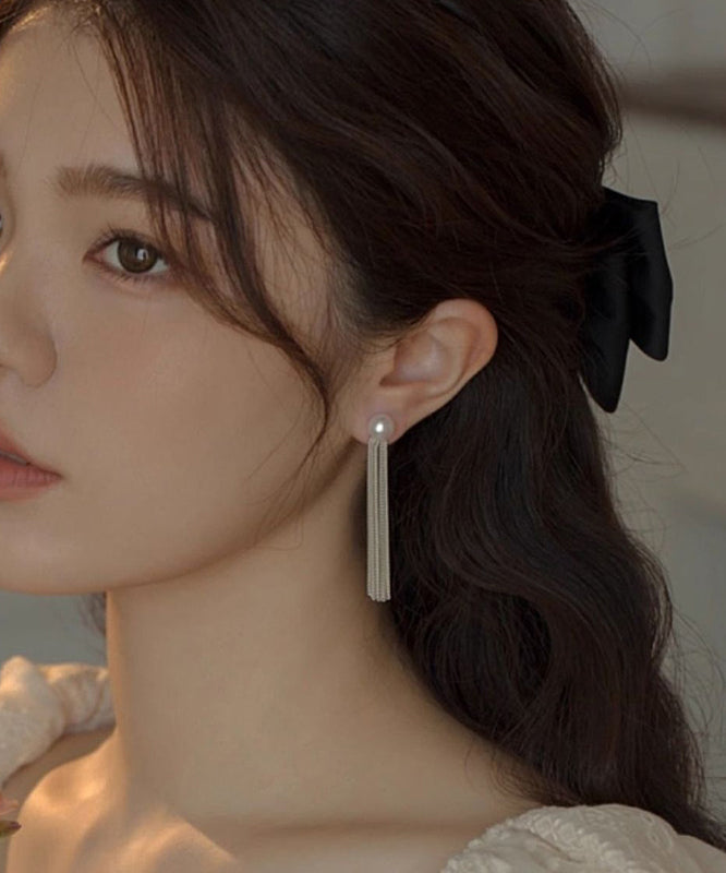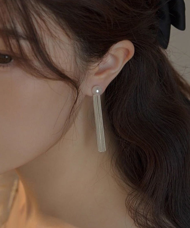 Skinny Silk Sterling Silver Pearl Tassel Drop Earrings
