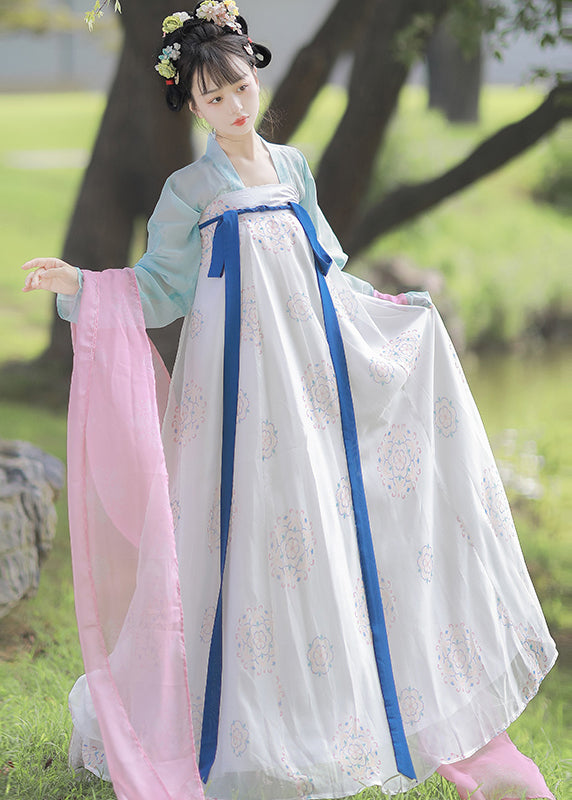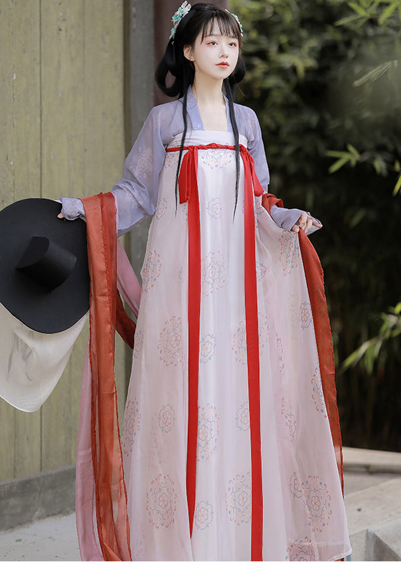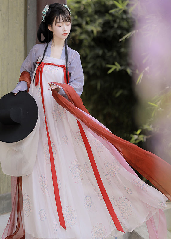 Style Purple Print Tops And Pink Maxi Dresses Patchwork Chiffon Two-Piece Set Fall