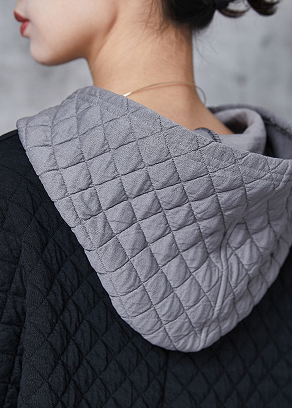 Stylish Black Hooded Patchwork Thick Cotton Holiday Dress Spring