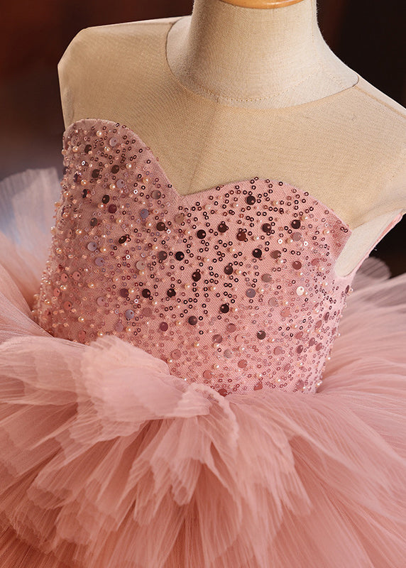 Stylish Red Square Patchwork Tulle Girls Long Dresses Sleeveless