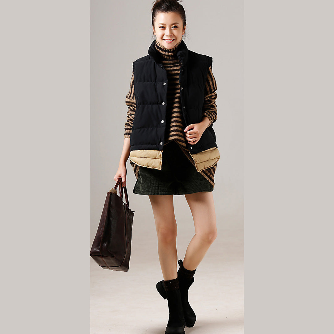 Sweater pullover Vintage high neck khaki thick Art knitted tops striped