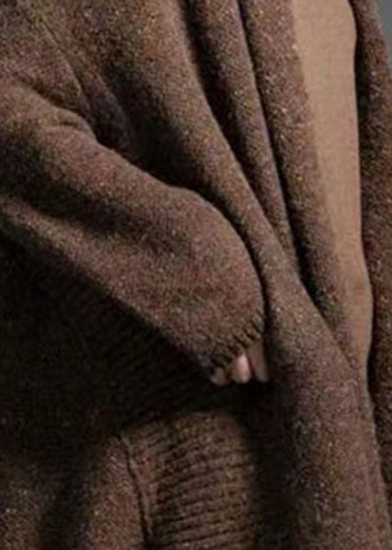 Vintage Coffee V Neck Patchwork Wool Knitting Cardigan Spring