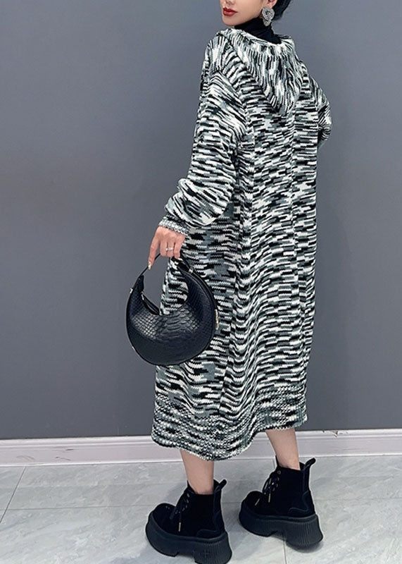 Vogue Red Print Maxi Hooded Knit Cardigans Long Sleeve