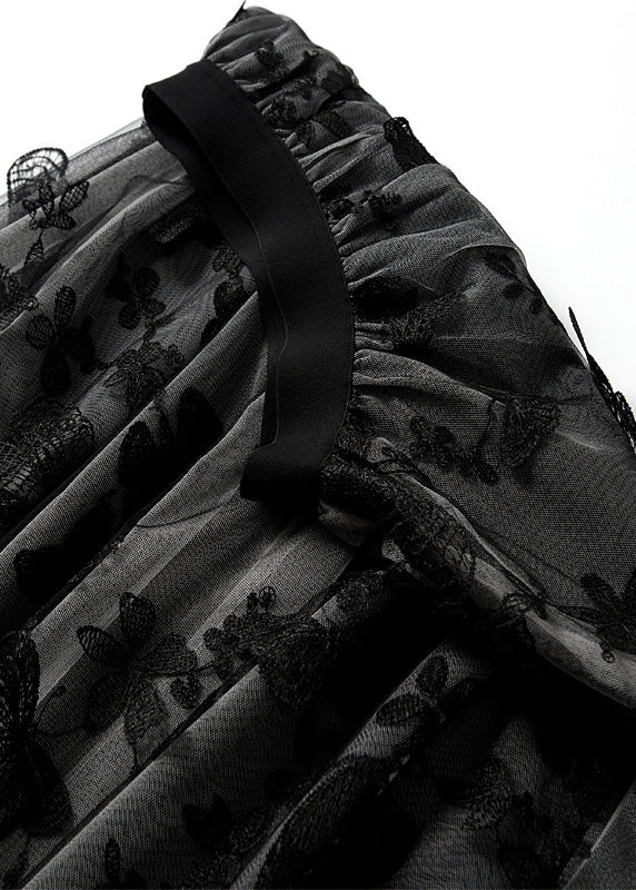 Women Black Butterfly Elastic Waist Tulle A Line Skirts Spring